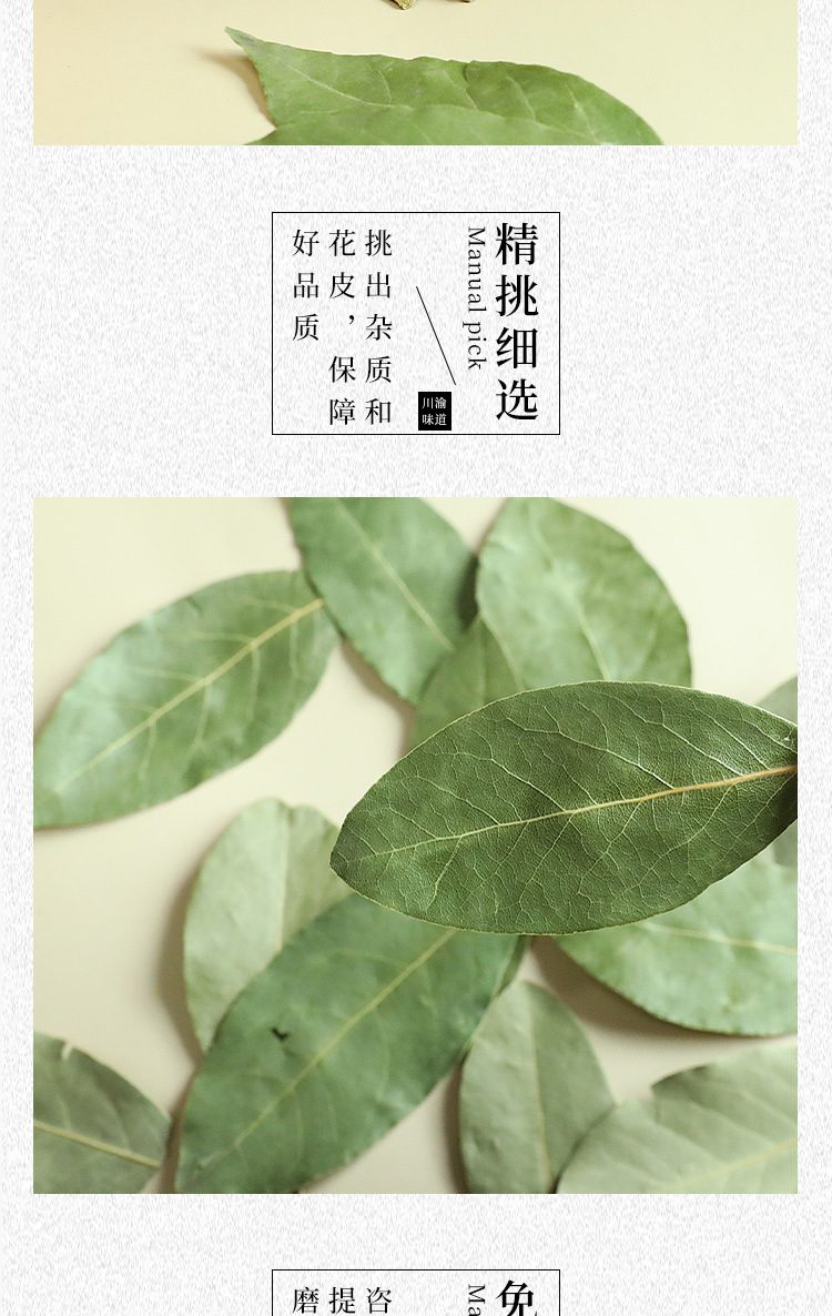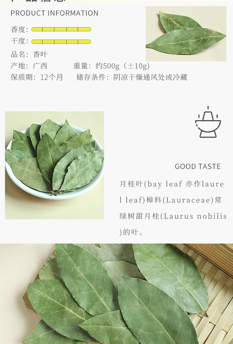 【烹饪应用】散装干香叶是制作汤品和炖菜的重要香料,其独特的甜香气息能为菜肴增添层次感。在制作红烧肉、卤味、汤品时,香叶是不可或缺的调味品。香叶还可用于腌制食材、制作调味酱汁,或作为汤品和炖菜的提味香料,为菜肴增添温暖的甘甜风味。在西餐中,香叶常用于制作高汤、炖菜和海鲜料理。