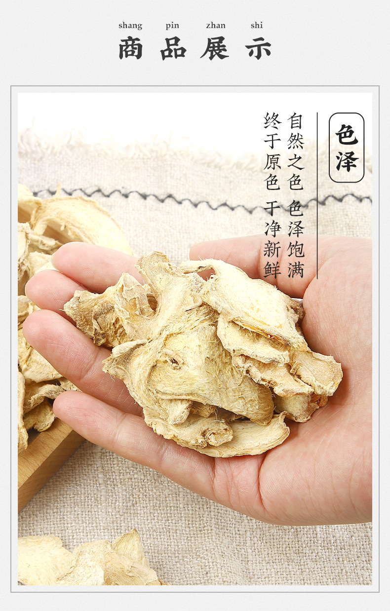 【饮品调配】干姜片不仅可以用于烹饪,还能用于调制特色饮品。将干姜片与茶叶、蜂蜜等搭配,可以制作出具有独特风味的养生茶饮。在秋冬季节,用干姜片煮制的热饮具有温胃散寒的功效,特别适合胃寒体质的人群饮用。