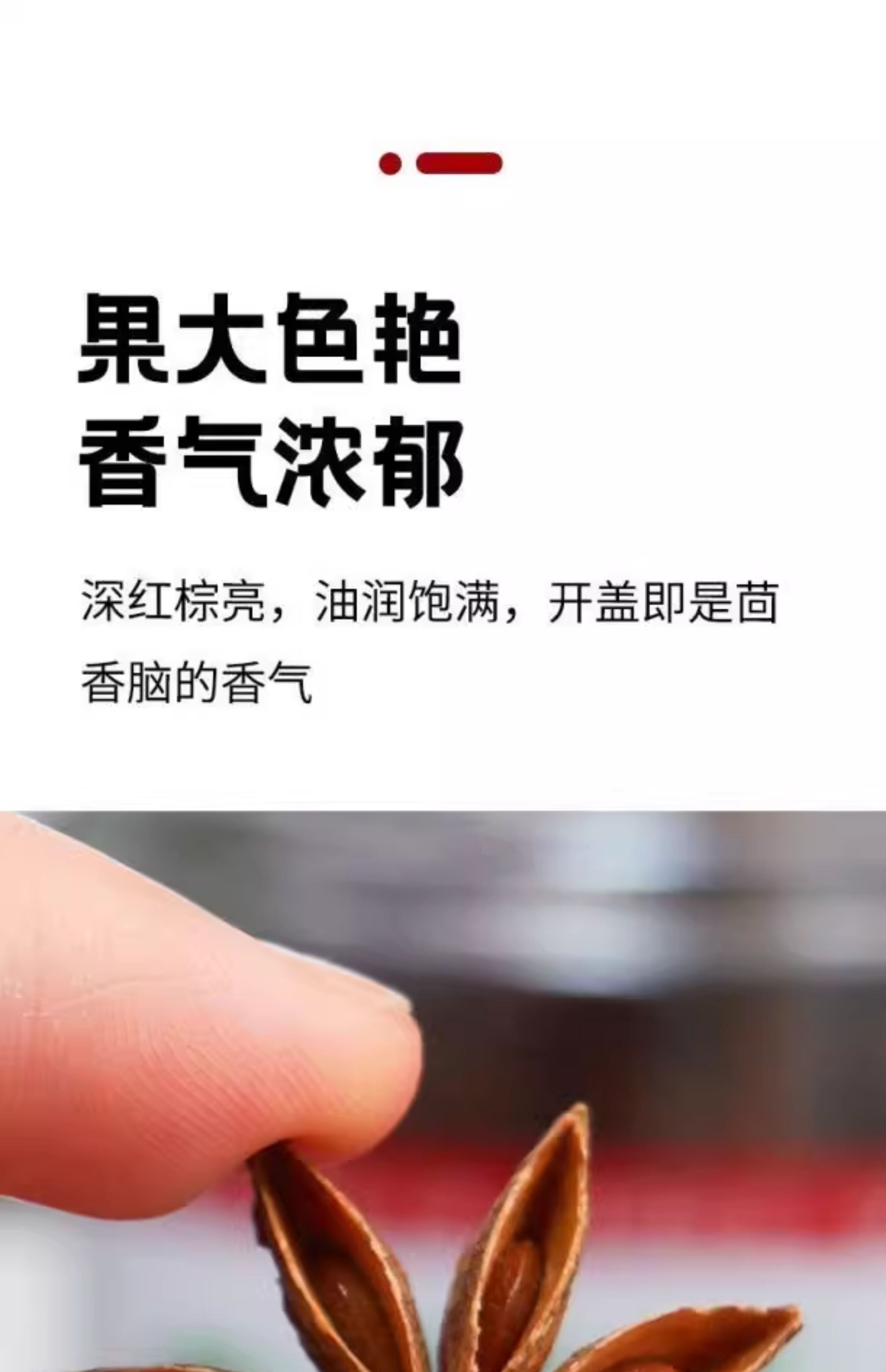 精选八角,香味纯正,是卤味与汤品的经典香料。