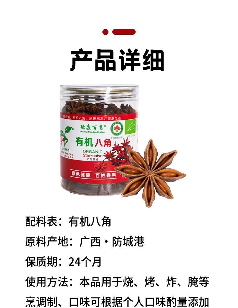 绿康百香有机八角100g 广西八角大料大茴香卤料香料香辛料调料 产品详情