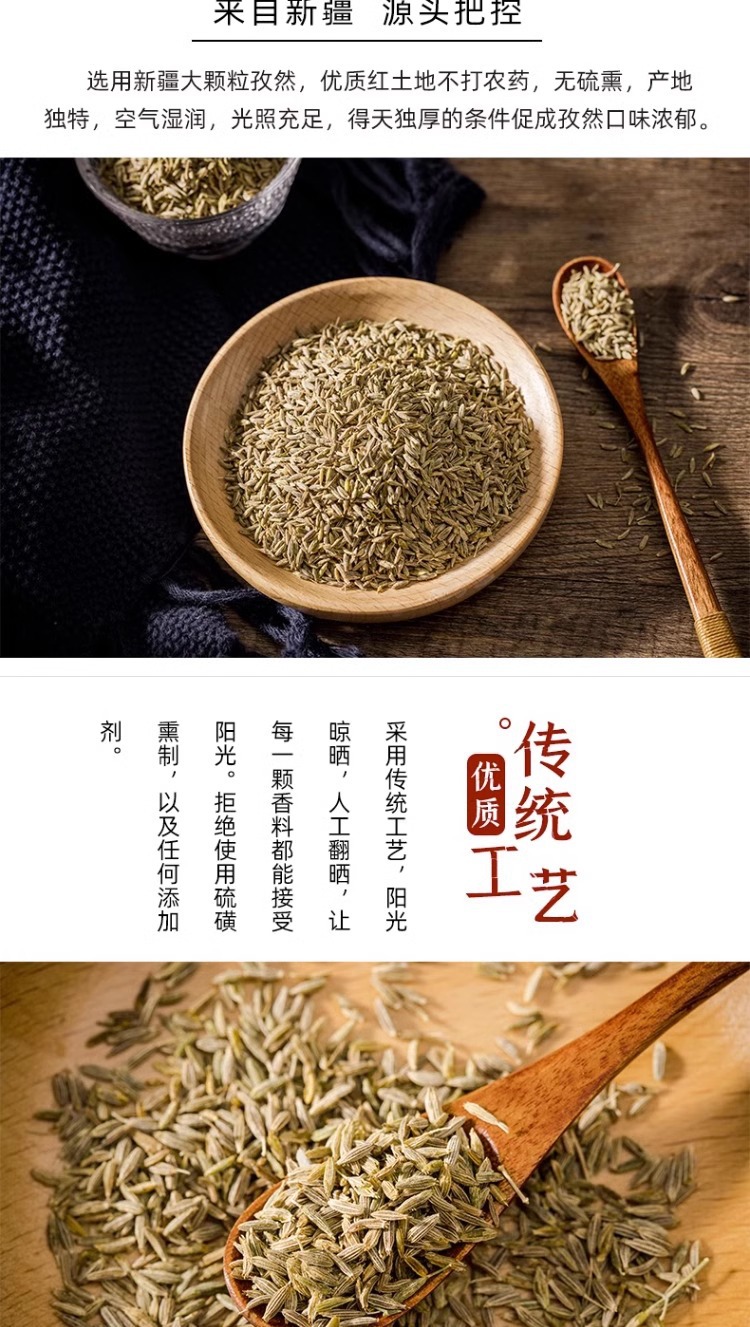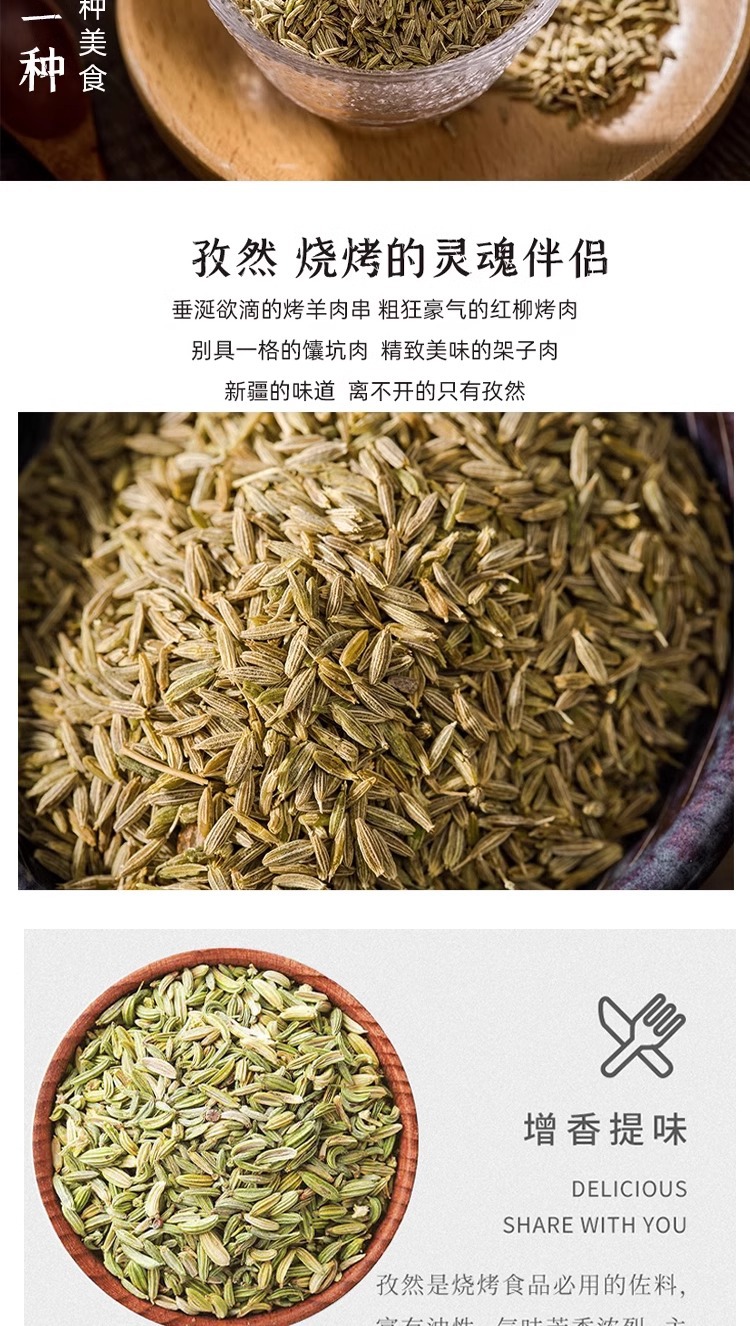 【保健功效】孜然含有丰富的挥发油和多种维生素,具有温中散寒、理气止痛的功效。在传统中医理论中,孜然被广泛用于治疗胃寒腹痛、消化不良等症状。现代研究表明,孜然还具有抗氧化、抗炎和促进消化的作用,适量食用有助于增强免疫力和改善肠胃功能。