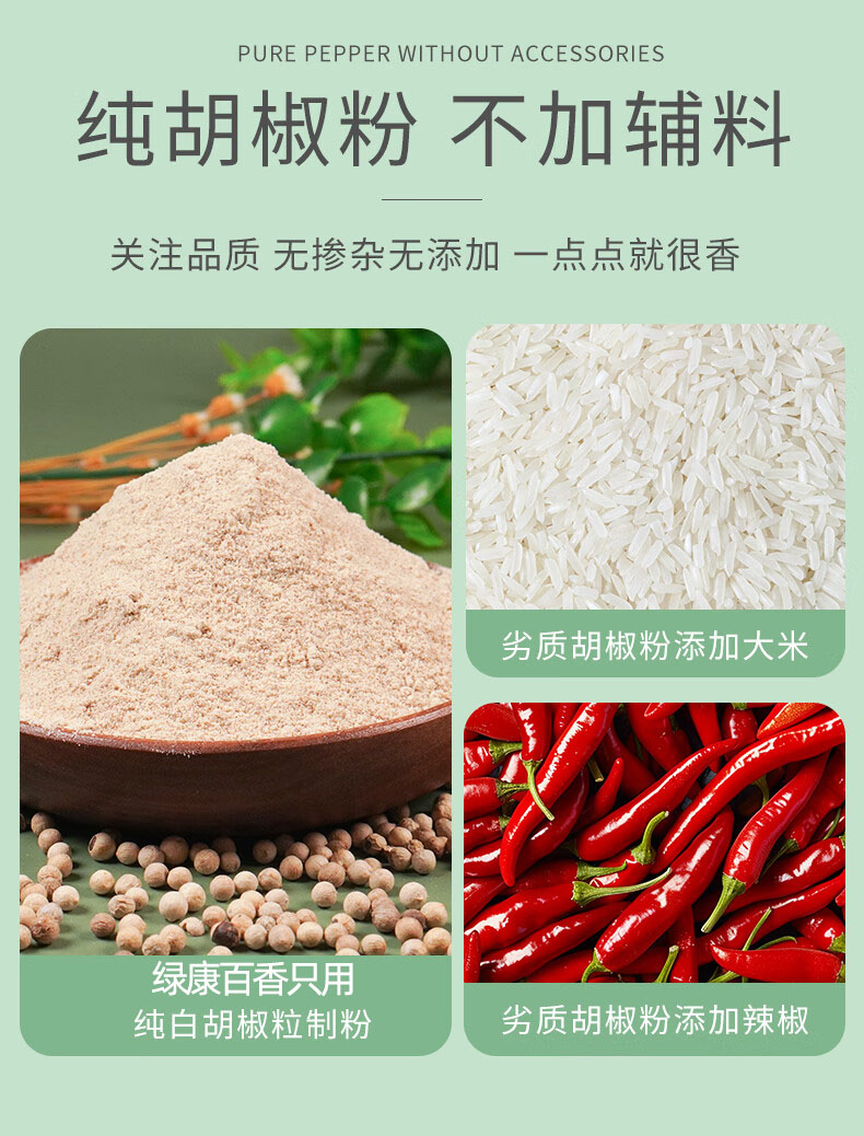 【海鲜调味】精选的白胡椒粉是海鲜料理的理想调料,无论是蒸鱼、炒虾还是烤扇贝,只需少量撒上即可去除海鲜的腥味,突出食材本身的鲜甜,是海鲜餐厅和家庭烹饪的必备调料。
