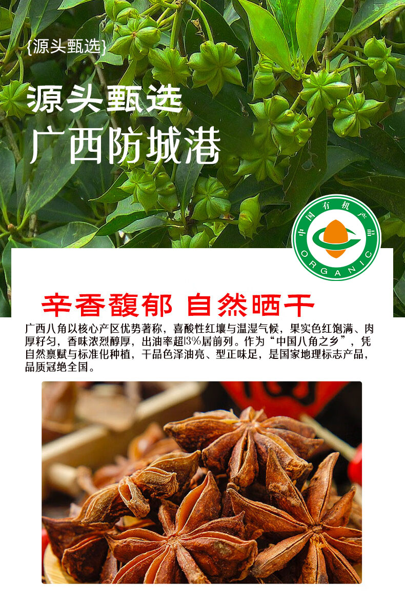 精选八角,香味纯正,是卤味与汤品的经典香料。